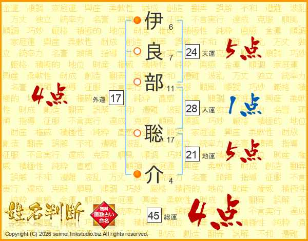 伊良部聡介さんの総運は45画の4点!