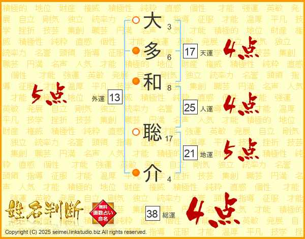 大(3画)多(6画)和(8画) 聡(17画)介(4画)