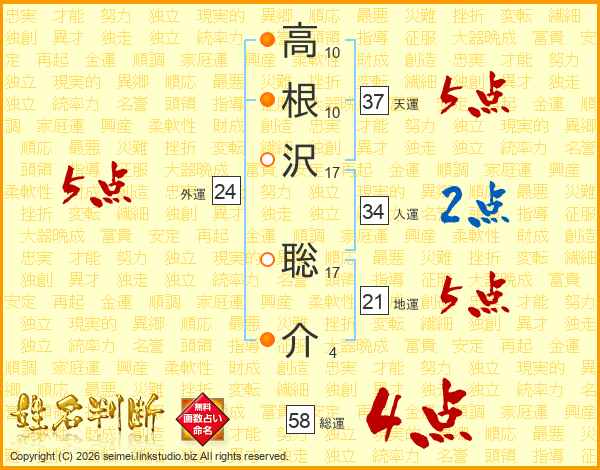 高根沢聡介さんの総運は58画の4点!