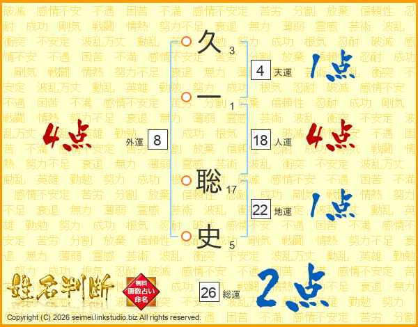 久一聡史さんの総運は26画の2点!
