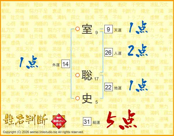 室聡史さんの総運は31画の5点!