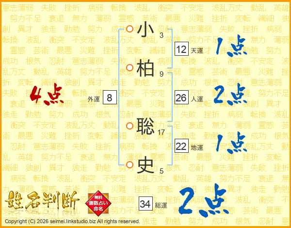 小柏聡史さんの総運は34画の2点!