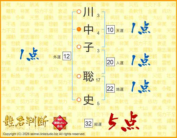 川中子聡史さんの総運は32画の5点!