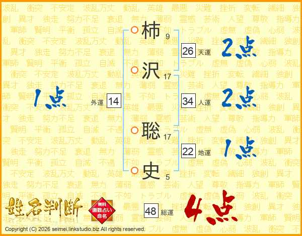 柿沢聡史さんの天運は26画の2点!