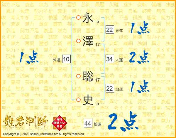 永澤聡史さんの総運は44画の2点!
