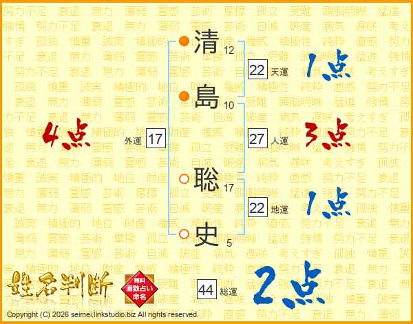 清島聡史さんの総運は44画の2点!