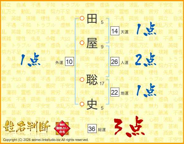 田屋聡史さんの総運は36画の3点!