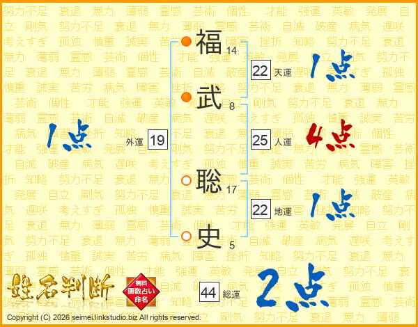 福武聡史さんの総運は44画の2点!