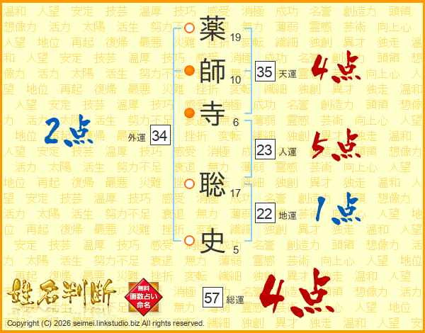 薬師寺聡史さんの総運は57画の4点!