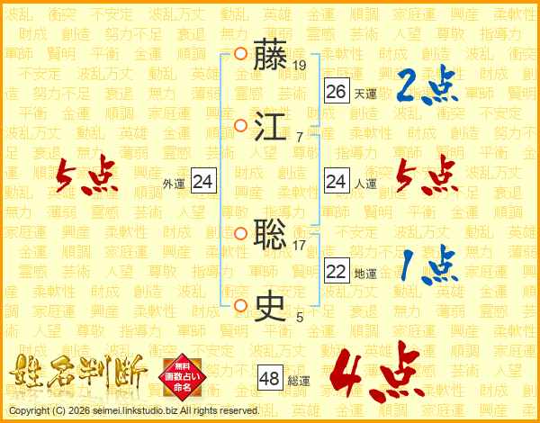 藤江聡史さんの人運は24画の5点!