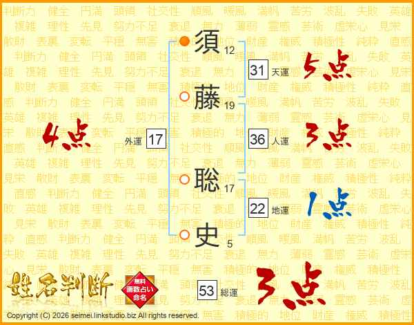 須藤聡史さんの天運は31画の5点!
