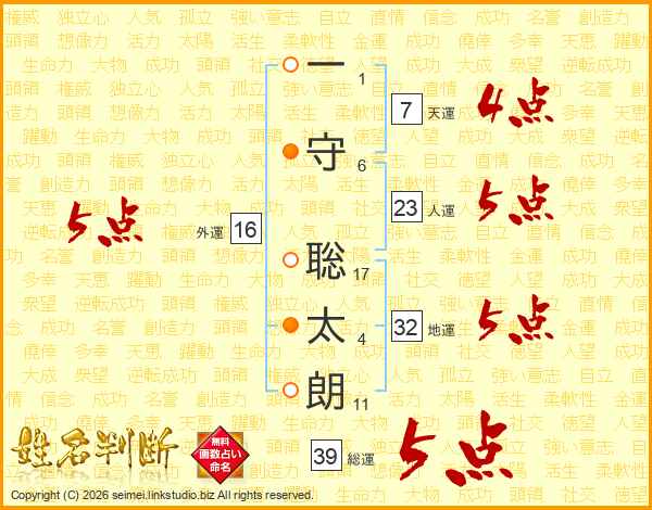 一守聡太朗さんの総運は39画の5点!