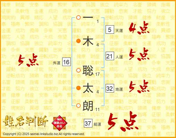 一(1画)木(4画) 聡(17画)太(4画)朗(11画)