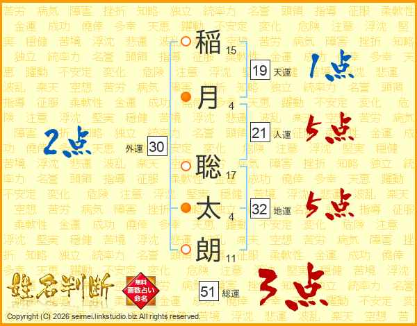 稲月聡太朗さんの総運は51画の3点!