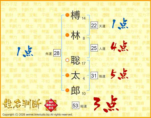 榑(14画)林(8画) 聡(17画)太(4画)郎(10画)