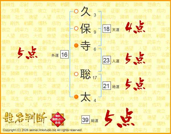 久保寺聡太さんの総運は39画の5点!
