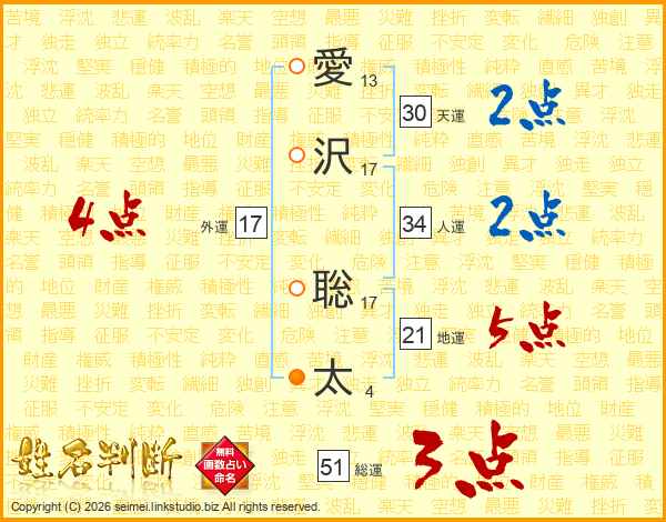愛沢聡太さんの天運は30画の2点!