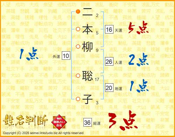 二本柳聡子さんの総運は36画の3点!