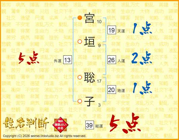 宮垣聡子さんの総運は39画の5点!