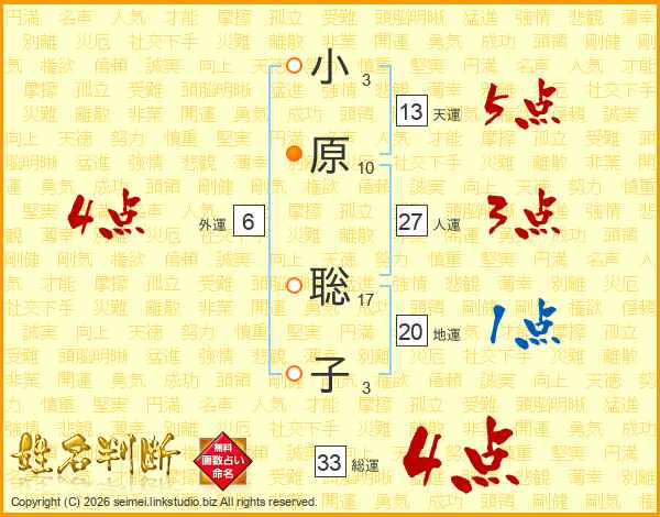 小原聡子さんの総運は33画の4点!