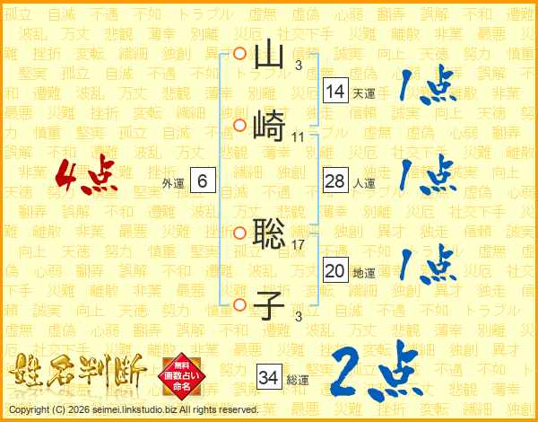 山(3画)崎(11画) 聡(17画)子(3画)