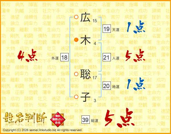 広木聡子さんの総運は39画の5点!