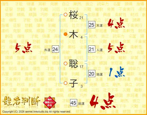 桜木聡子さんの総運は45画の4点!