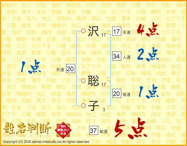 沢聡子さんの総運は37画の5点!