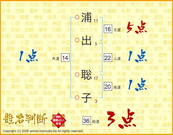 浦出聡子さんの外運は14画の1点!