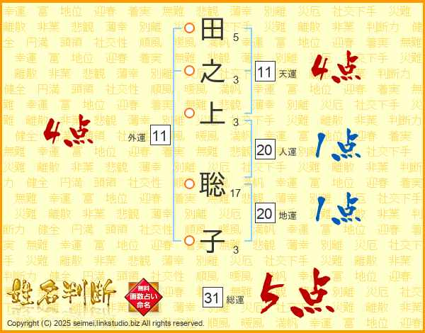 田之上聡子さんの総運は31画の5点!