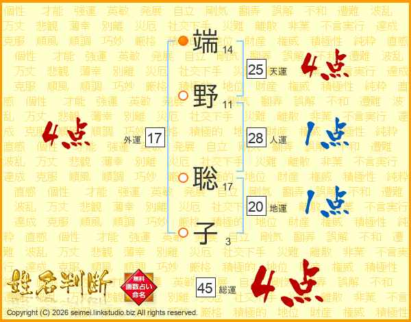 端野聡子さんの天運は25画の4点