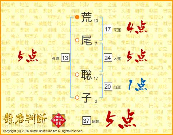 荒尾聡子さんの総運は37画の5点!