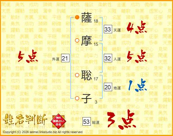 薩摩聡子さんの総運は53画の3点!