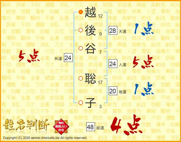 越後谷聡子さんの人運は24画の5点!
