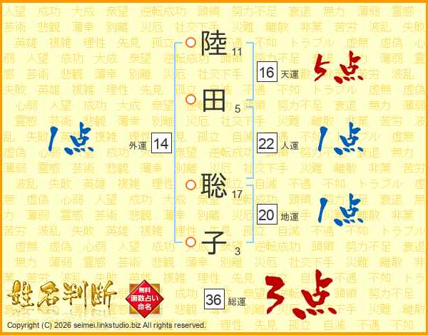 陸田聡子さんの天運は16画の5点!
