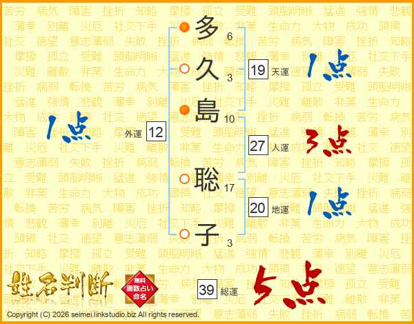 多久島聡子さんの総運は39画の5点!