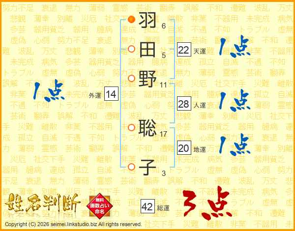 羽田野聡子さんの人運は28画の1点!