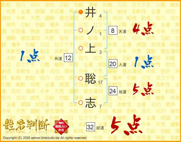 井ノ上聡志さんの総運は32画の5点!