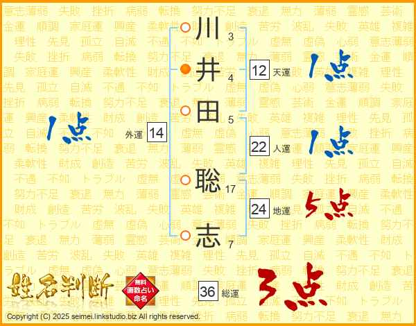 川(3画)井(4画)田(5画) 聡(17画)志(7画)