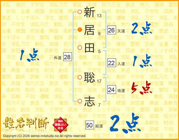 新居田聡志さんの天運は26画の2点!