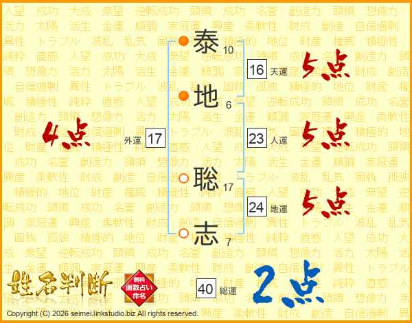 泰地聡志さんの総運は40画の2点!
