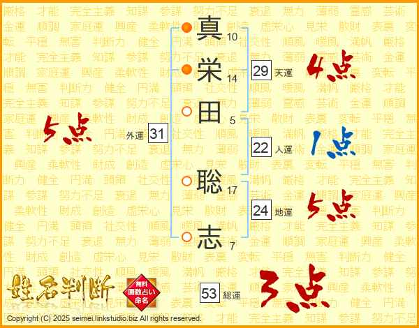 真(10画)栄(14画)田(5画) 聡(17画)志(7画)
