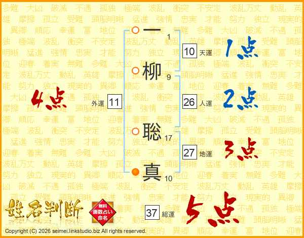 一柳聡真さんの総運は37画の5点!