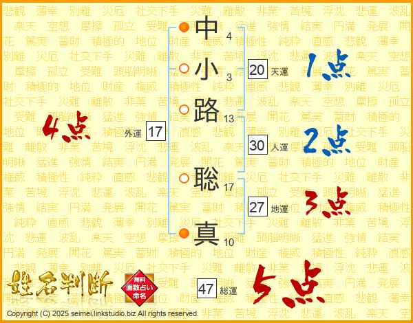 中小路聡真さんの総運は47画の5点!