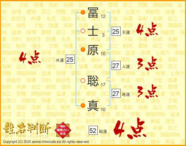 冨(12画)士(3画)原(10画) 聡(17画)真(10画)