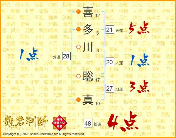 喜多川聡真さんの総運は48画の4点!