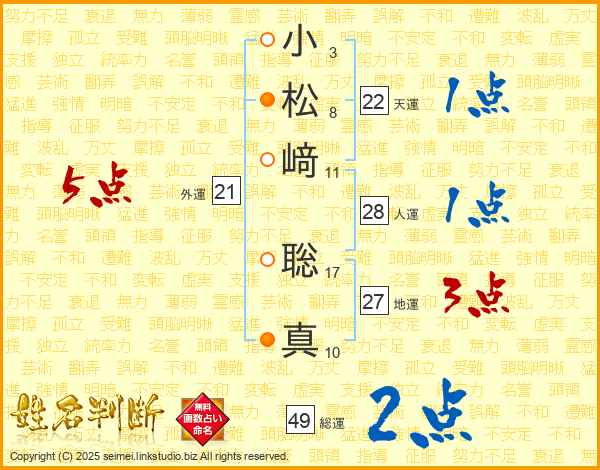 小(3画)松(8画)﨑(11画) 聡(17画)真(10画)