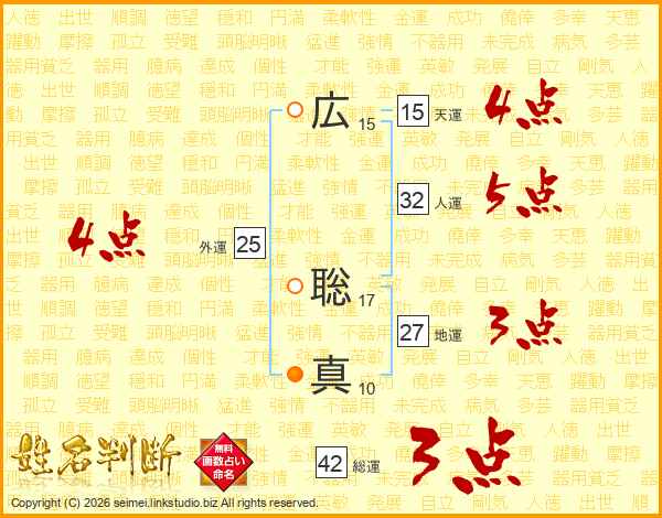 広(15画) 聡(17画)真(10画)