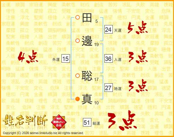 田邊聡真さんの天運は24画の5点!