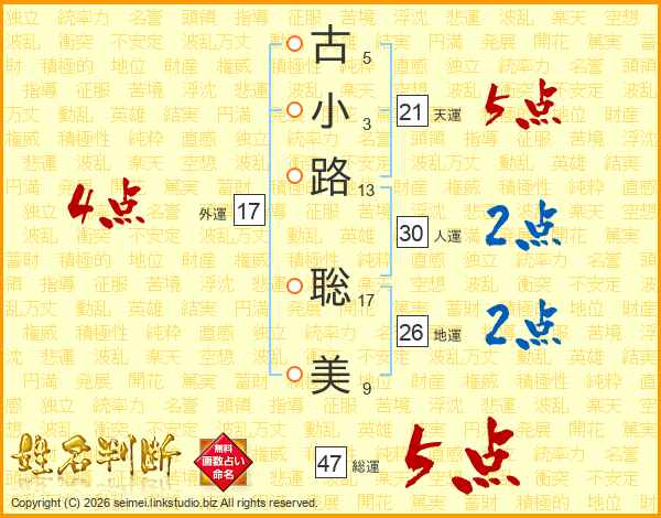 古小路聡美さんの総運は47画の5点!